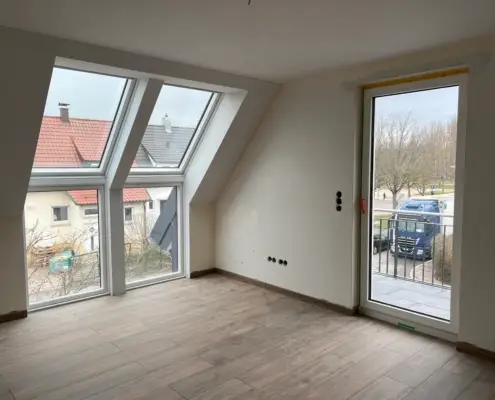 Das Architekturbüro schrammARCHITEKTEN wurde mit dem Entwurf für ein Neubau in Böblingen beauftragt. Das Gebäude soll möglichst viel Wohnfläche für eine große Familie bieten. Dazu musste eine Lösung für das Dachgeschoss gefunden werden, die maximalen Raumgewinn ermöglicht, wobei laut Bebauungsplan keine Dachaufbauten zulässig sind. Durch den Einsatz von Panorama- und Kniestockfenstern wird der Bauherrenwunsch dennoch erfüllt. Es ergeben sich sehr helle und großzügige Zimmer unter dem Dach.